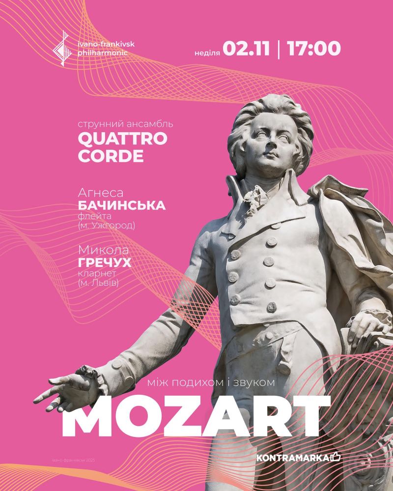 Запрошуємо на витончений вечір музики Вольфганга Амадея Моцарта - композитора, чиї мелодії торкаються душі та відкривають безмежний світ краси й гармонії.