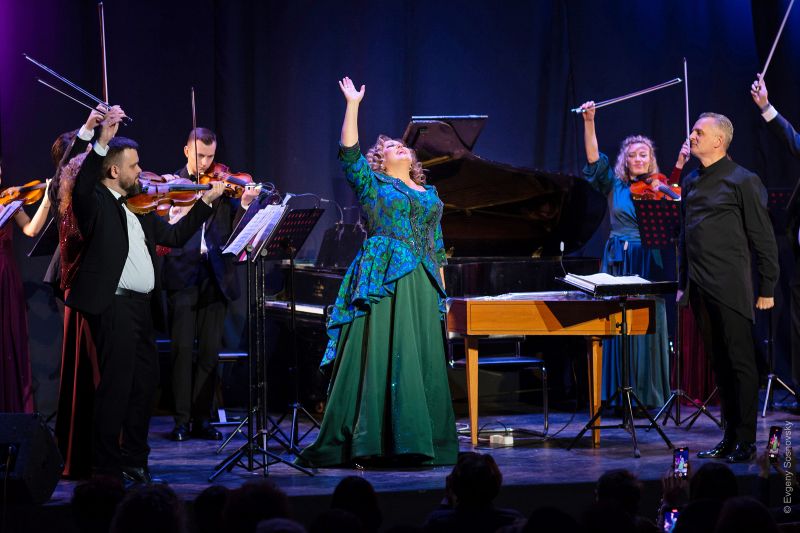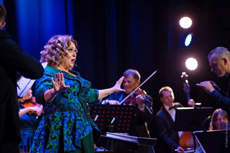 І, нарешті, кульмінація концерту – поява на сцені уславленої української примадонни Людмили Монастирської (до слова, точно знаю кількох фанаток, які опинилися в залі саме заради Сонцесяйної!). Урочистий «Panis Angelicus» Сезара Франка та запальні народні «Чорні Очка», «Ой, заграйте музики!» й «Ой, я знаю, що гріх маю» остаточно підкорили вдячну публіку, яка саме ледве що не пускалася в танець, притупуючи на місцях у такт музики й щораз зриваючись на оплески.