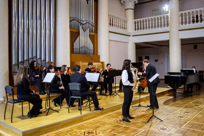 Це була досить рідкісна нагода почути у несподіваному амплуа саксофон, звичніший для нас у джазових клубах чи естрадних ансамблях – у діалозі зі струнним оркестром. На сцені філармонії виступили одразу два молоді віртуози – Вікторія Дмитрук та Роман Мимрик.